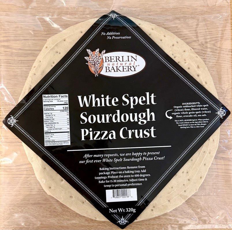 Each crust is handmade in small batches with fresh, all natural, Unbleached White Spelt flour, and then lovingly par baked to perfection.